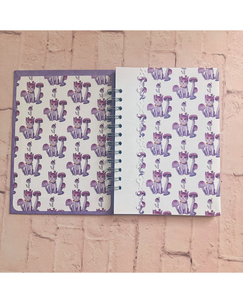 Cuaderno ilustrado con portada de Fungi gatito Amanita muscariaIncluye 80 hojas de papel bond 105g , interior a elección.Sobre ilustrado interior